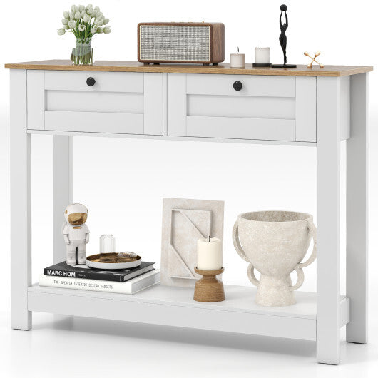 Farmhouse Console Table with 2 Drawers 42 inch Long Narrow Entryway Table