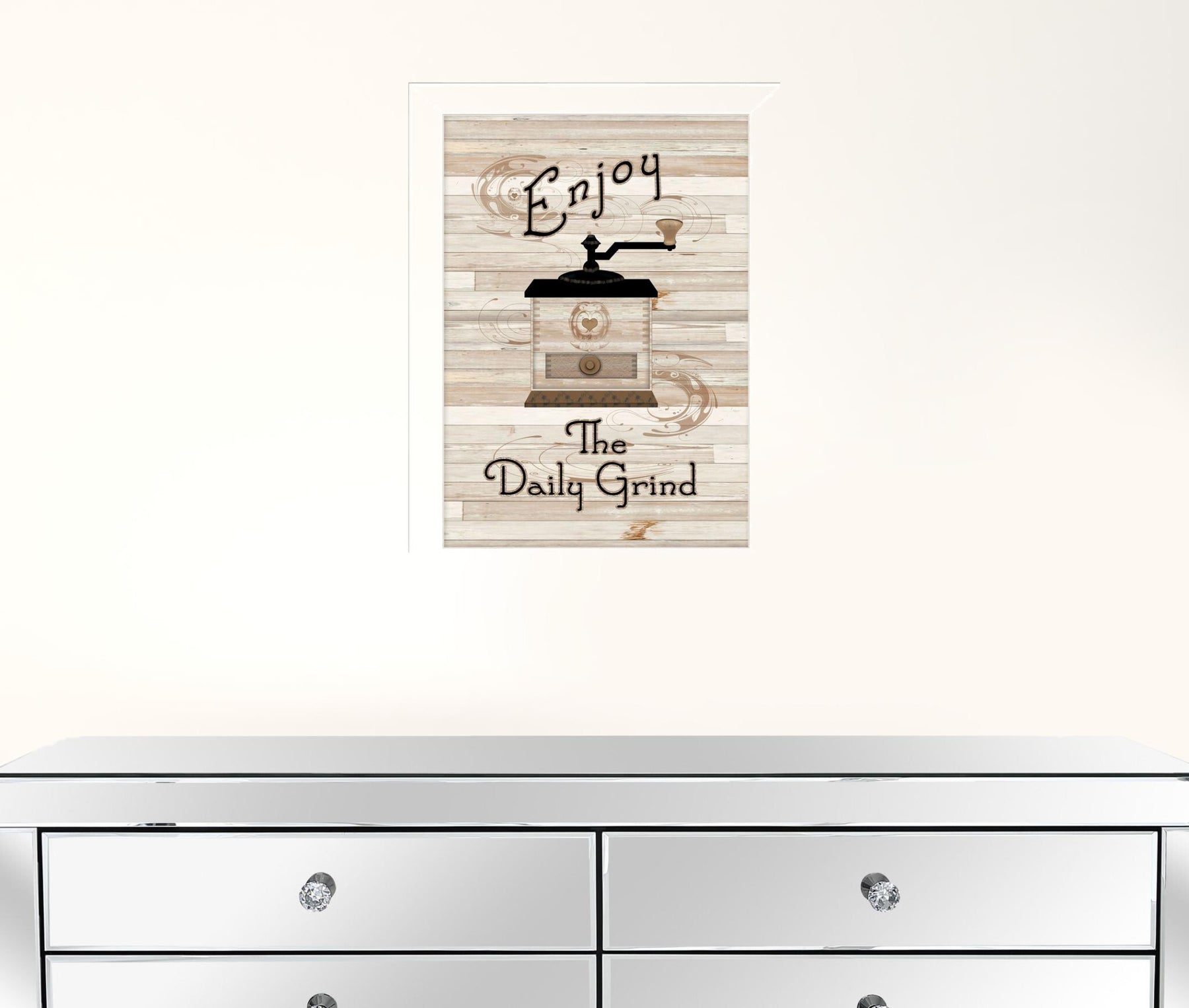 The the daily grind 4 white framed print kitchen wall art is the perfect decorative accessory for your home. This print is a visual artistic expression that allows you to decorate your space in style. Reproduced for you on paper, this hanging decorative accent will be a trendy and fashionable way to dress your walls. Adding this hanging wall art to your space to make your room feel more finished and attractive. Utilize this opportunity to create a focal point in the room with this fabulous wall decor option. 14-inch H x 10-inch W x 1-inch D