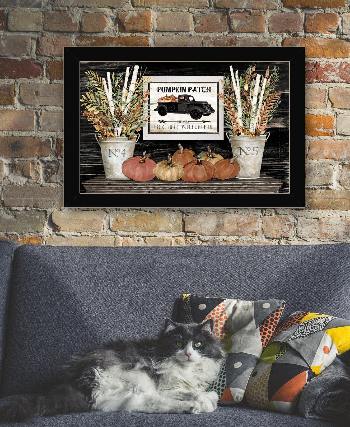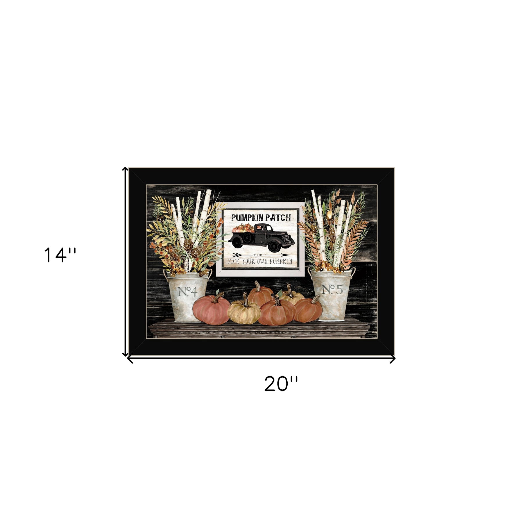 Unique and decorative, this pumpkin patch still life 1 black framed print wall art will leave a lasting impression. This print is a visual artistic expression that allows you to decorate your space in style. Reproduced for you on paper, this hanging decorative accent will be a trendy and fashionable way to dress your walls. Adding this hanging wall art to your space to make your room feel more finished and attractive. Utilize this opportunity to create a focal point in the room with this fabulous wall decor option. 14-inch H x 20-inch W x 1-inch D