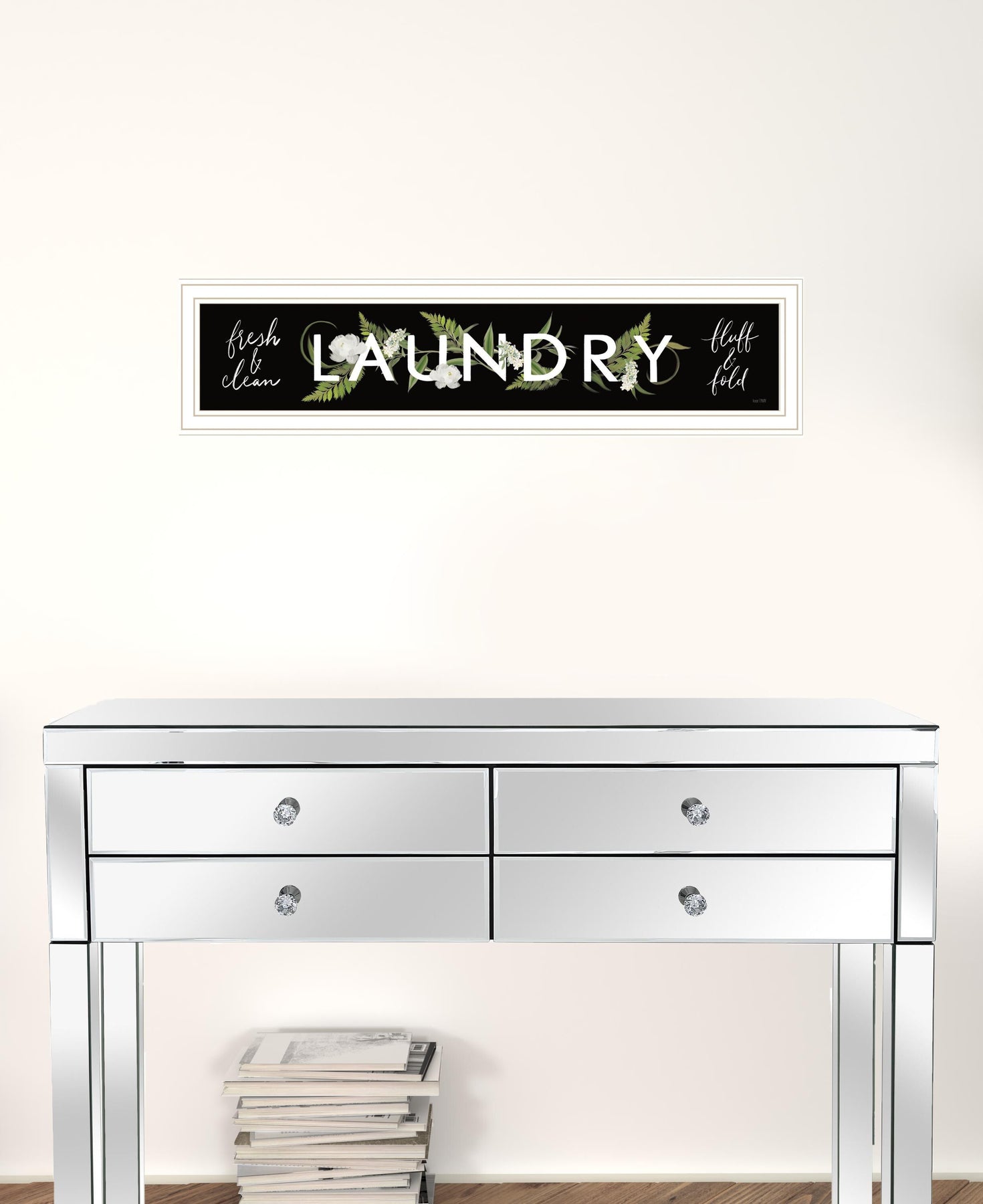 Unique and decorative, this laundry fresh and clean 2 white framed print bathroom wall art will leave a lasting impression. This print is a visual artistic expression that allows you to decorate your space in style. Reproduced for you on wood, this hanging decorative accent will be a trendy and fashionable way to dress your walls in a rustic and modern farmhouse vibe. Hang on your wall to add some up to date fashion and decoration. Utilize this opportunity to create a focal point in the room with this fabulous wall decor option. 8-inch H x 32-inch W x 1-inch D