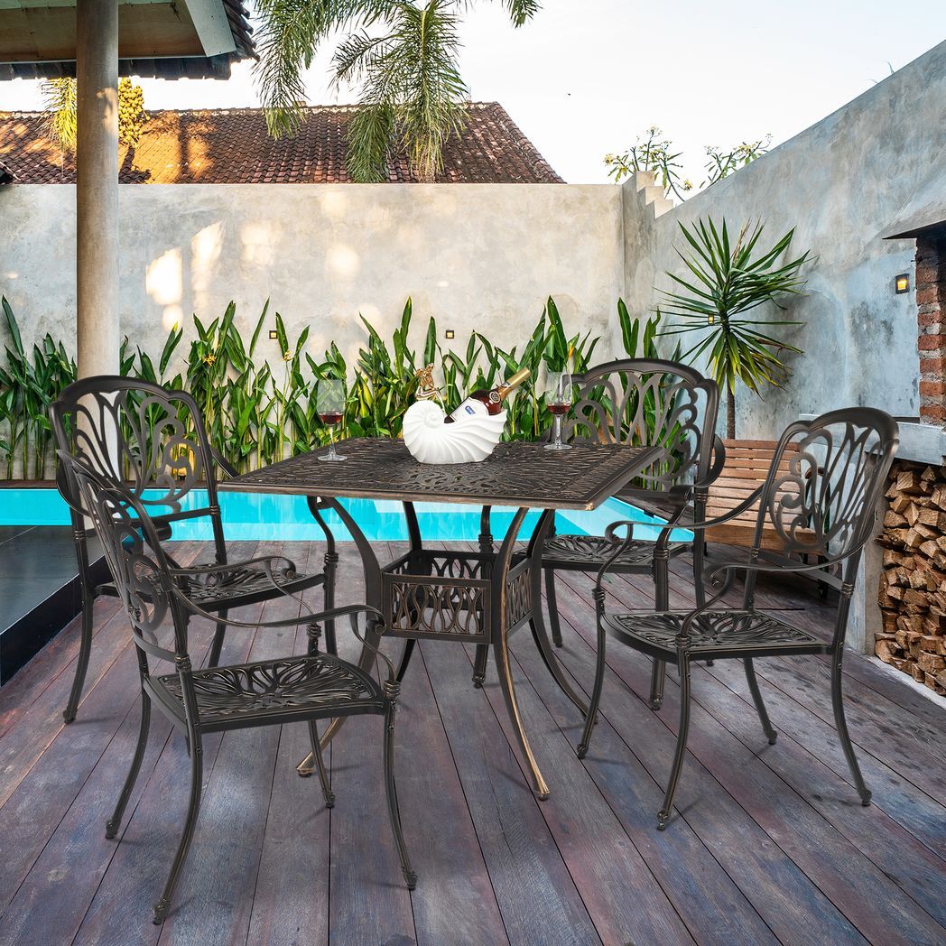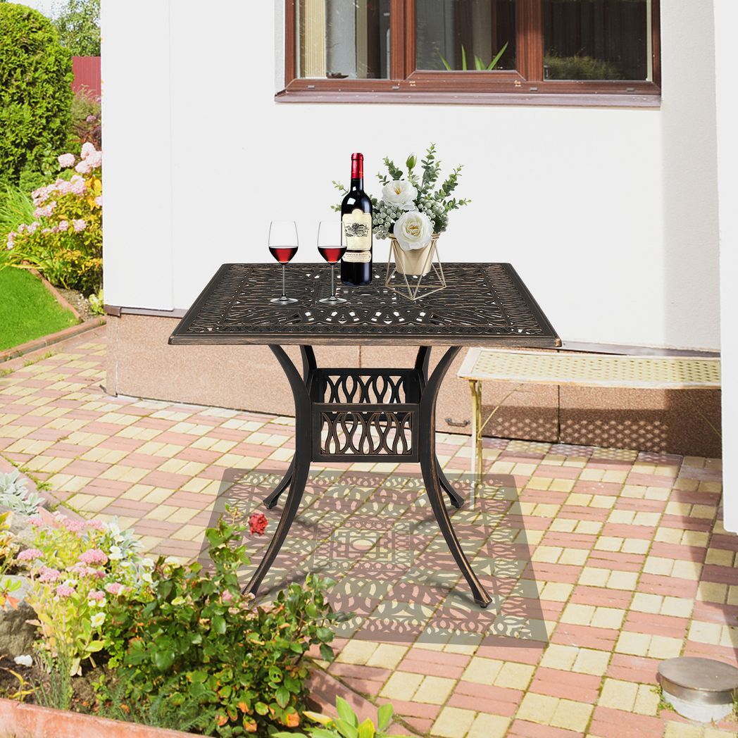 How about spending a relaxing afternoon with your friend in your garden? All you need is a nice cup of coffee and a dining table. We recommend this 81*81*104cm Square Top Courtyard Cast Aluminum Table Bronze for you. This iron table is more durable than regular table. That makes our tables against severe weather and ensure longer service life. The powder coated steel iron smooth, which can be quickly wiped. Useful and good looking, this table will not disappoint you.