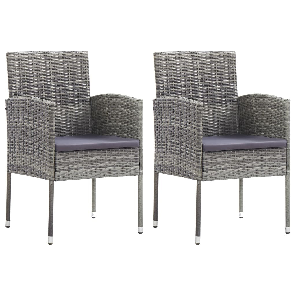 This outdoor dining chair set boasts modern design and makes a stylish touch to your patio or balcony. Made from durable poly rattan and comfy dark gray cushions, this seating option not only lifts your outdoor vibe but also gives you top notch comfort for dining or chilling.