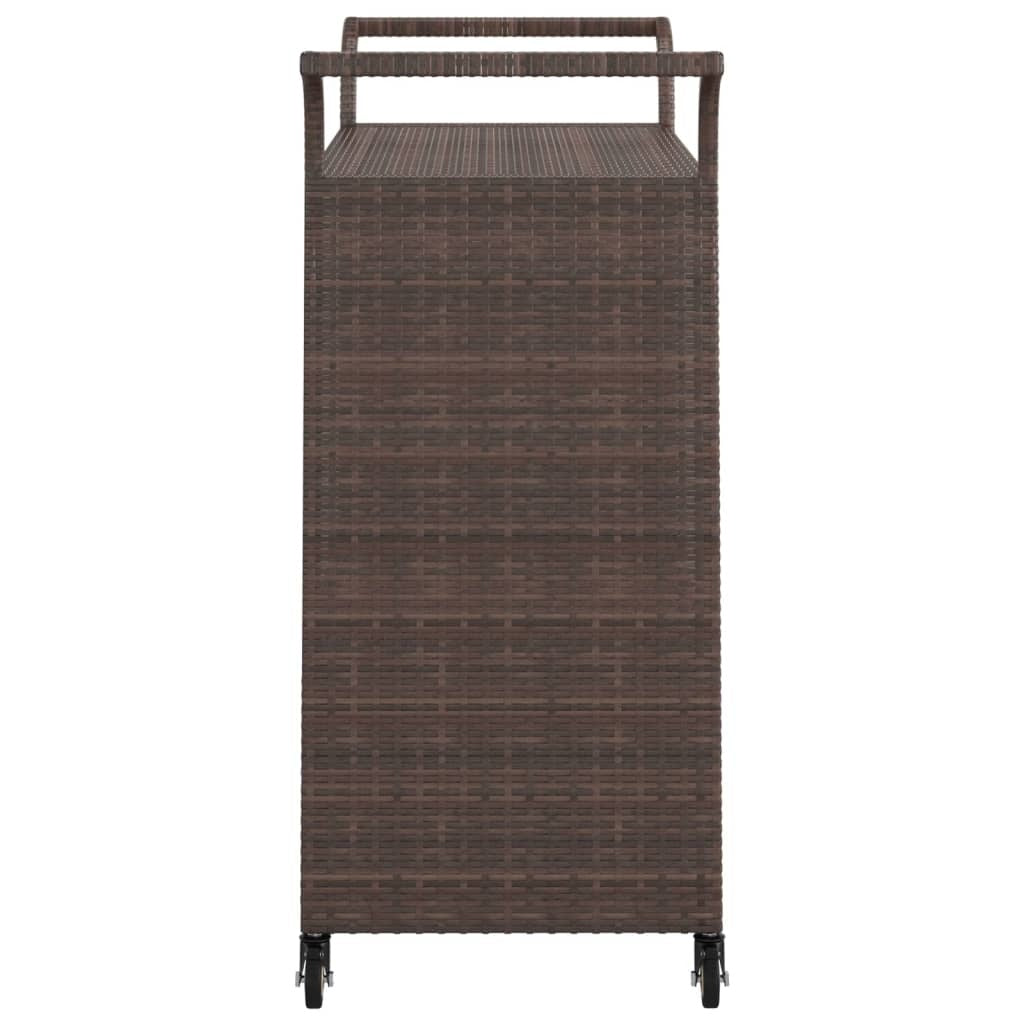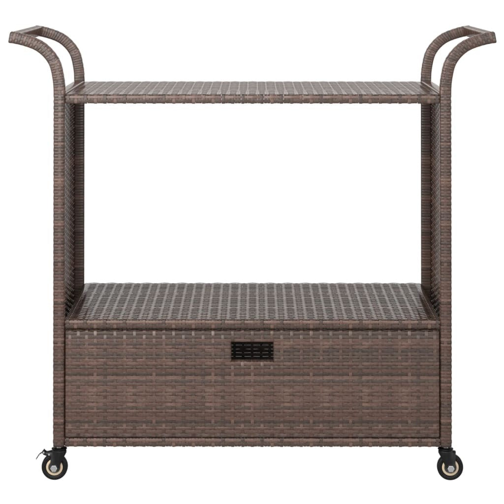 This trolley is made of poly rattan and is weather-proof, and need less maintenance. It is suitable for daily use. The garden cart has a drawer to prevent food from falling on the ground. The powder-coated steel frame keeps the serving cart stable and sturdy. The handle on the top makes it easy to push and pull. Thanks to the smoothly-rolling castors, the trolley can be moved around effortlessly. Additionally, two of the castors have a lock function to prevent the cart from rolling away.